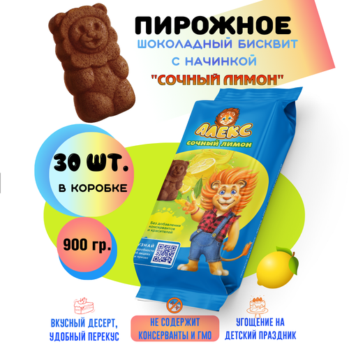 Пирожное бисквитное львенок Алекс, шоколадный бисквит с начинкой "Сочный лимон", бокс 30 шт. по 30 г