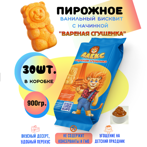 Пирожные бисквитные детские львенок Алекс, ванильный бисквит с начинкой "Вареная сгущенка" , коробка с пирожными 30 шт. по 30 г