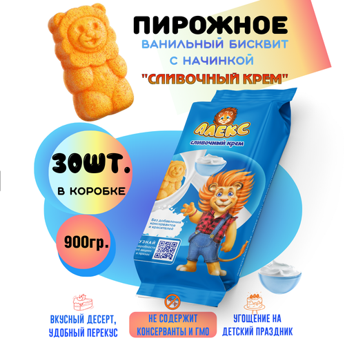 Пирожные бисквитные детские львенок Алекс, классический бисквит с начинкой "Сливочный крем" , набор 30 шт. по 30 г