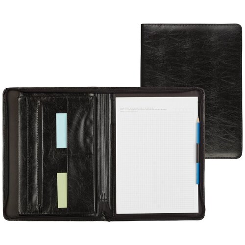 Папка Алекс искусственная кожа, с молнией в окантовку, черная