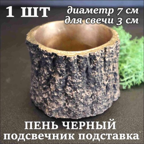 Подсвечник черный пень в золоте 1 шт 7 см для свечей до 3 см