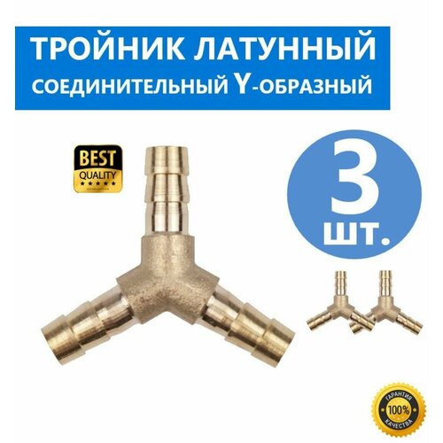 Тройник Y-образный латунный для автомобильных шлангов с внутренним диаметром 9-10 мм, 3 шт, соединение Елочка
