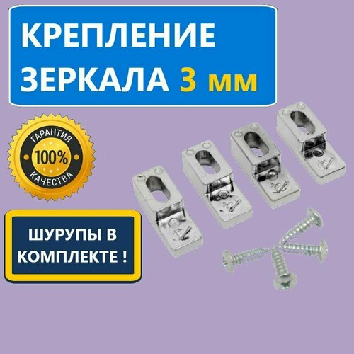 Крепление для зеркала толщиной 3 мм, Г-образное, 4 шт, с регулировкой, с шурупами, пластик, глянцевый
