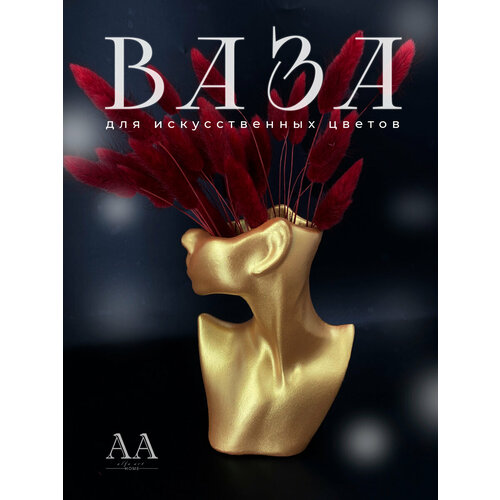 Ваза для сухоцветов декоративная для интерьера лицо Девушка Нежность из гипса золотая