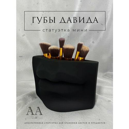 Статуэтка для интерьера и декора Губы Давида из гипса черные / Органайзер для кисточек Губы Давида мини из гипса