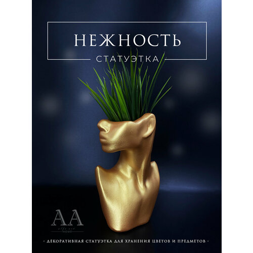 Статуэтка девушка девочка Нежность для интерьера из гипса золотая / Ваза голова лицо девушка Нежность
