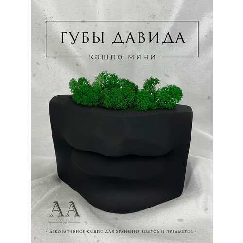 Кашпо из гипса губы Давида мини черные / Органайзер для хранения кисточек / Ваза для сухоцветов Губы