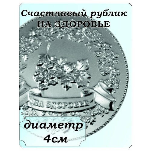 Монета "Счастливый рублик на Здоровье" 4см, серебристый
