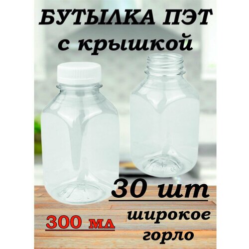 Бутылка пэт 0,3 л с крышкой 38 мм, квадратная, 30шт