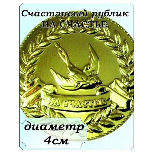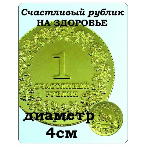 Монета "Счастливый рублик на здоровье" 4см, золотистый
