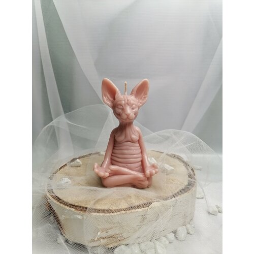 Свеча "Медитирующий кот" телесно-розовый