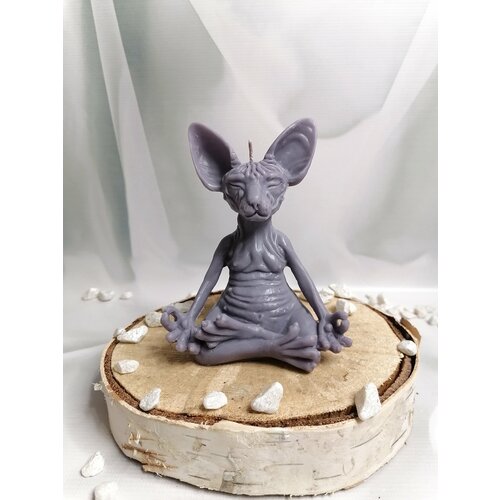 Свеча "Медитирующий кот" светло-серый" серо-фиолетовый