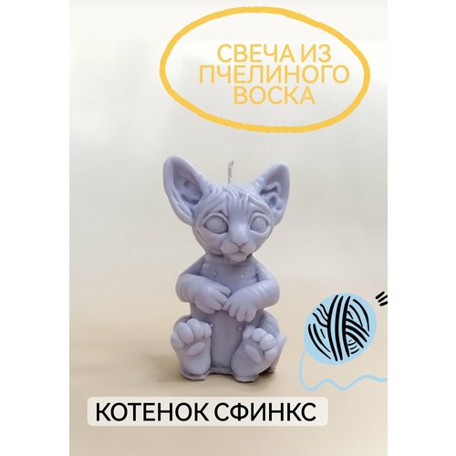 Кот "Сфинкс" свеча из пчелиного воска (серо-фиолетовый)