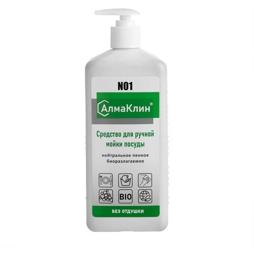 Алмадез АлмаКлин N1, 1л. Нейтральное моющее средство для посуды (без отдушки) , тв. флакон дозатор-на