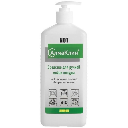 Алмадез АлмаКлин N1, 1л. Нейтральное моющее средство для посуды (лимон) тв. флакон, дозатор-насос
