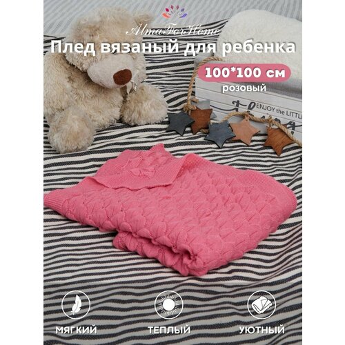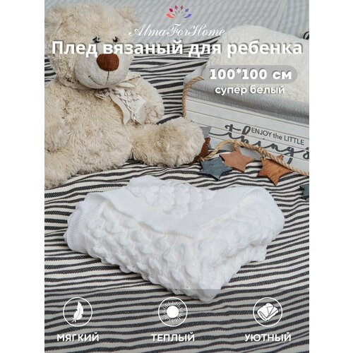 Плед вязаный детский хлопковый для новорожденного , плед для ребенка хлопковый в коляску , на выписку , на кровать для малыша AlmaForHome 100х100 см /