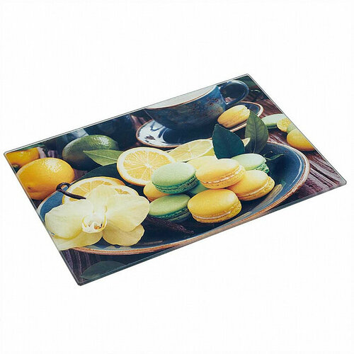 AK-9044 Доска разделочная стеклянная " Макаронс печенье"20*30 см
