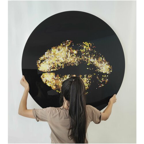 Большая круглая картина на закаленном стекле Golden kiss d100 см ALUMOART