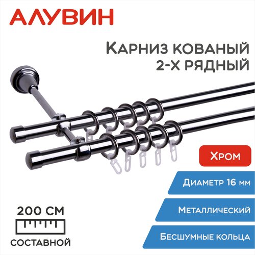 Карниз для штор кованый металлический двухрядный D16 Алувин составной 200 см (4х100 см), цвет Хром