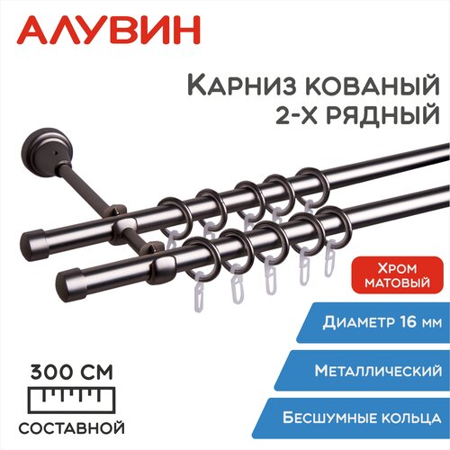 Карниз для штор кованый металлический двухрядный D16 Алувин составной 300 см (4х150 см), цвет Хром матовый