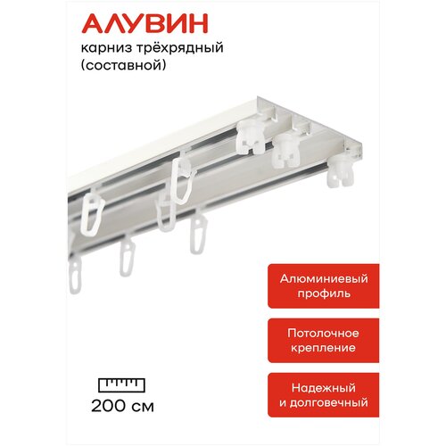 Карниз потолочный (шинный) алюминиевый трехрядный Алувин составной 200 см (2*100 см)