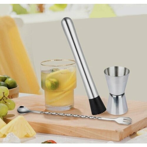 Коктейльный набор: Джиггер, мадлер, ложка мерная, нержавеющая сталь.