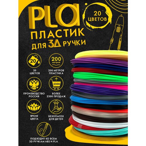 Пластик AmazingCraft для 3Д ручки PLA, 20 цветов по 10 метров, всего 200 метров, стержни для 3D ручки, картридж для 3D ручки