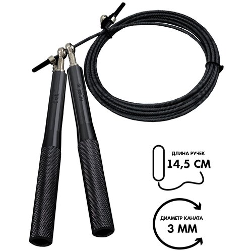 Скакалка AmazingCraft скоростная спортивная, металлические ручки, для взрослых и детей, для кроссфита и фитнеса, регулировка длины, черная