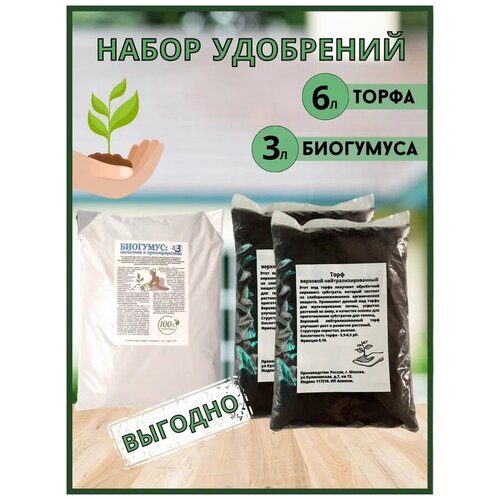 Набор удобрений для рассады Торф 6л+Биогумус 3л