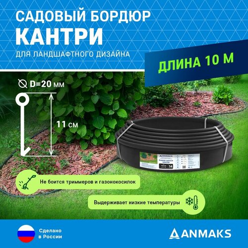 Пластиковый садовый бордюр ANMAKS Кантри, длина 10000 мм, высота 110 мм, арт. 82401-Ч