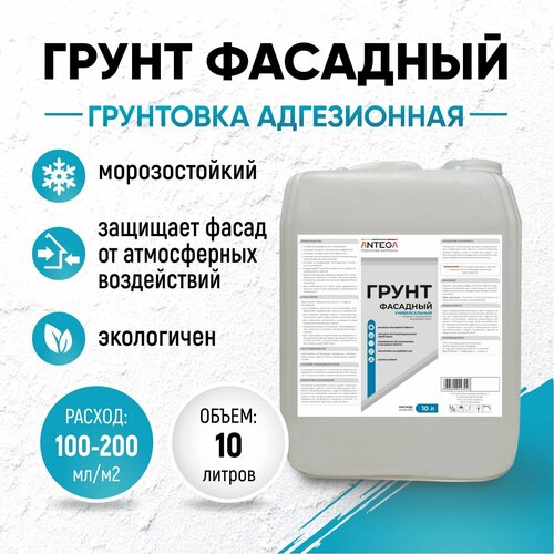 Фасадный грунт, 10 л, универсальная акриловая грунтовка, ANTEGA