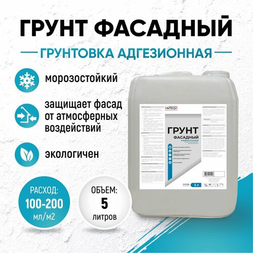 Фасадный грунт, 5 л, универсальная акриловая грунтовка, ANTEGA