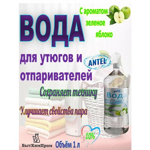 Вода для утюгов отпаривателей c ароматом Зеленое яблоко 1 л