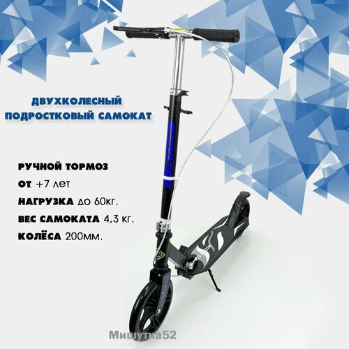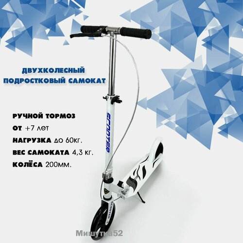 Самокат 2-х колесный складной 6699 ручной тормоз, нагрузка до 60кг, Белый