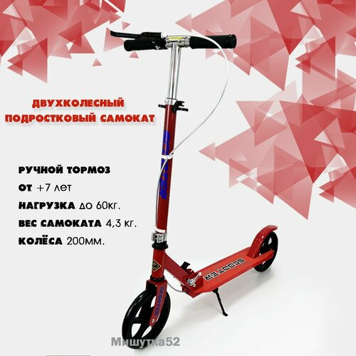 Самокат 2-х колесный складной 6699 ручной тормоз, нагрузка до 60кг, Красный