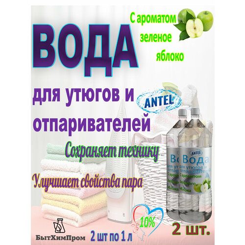 Вода для утюгов отпаривателей c ароматом Зеленое яблоко 1 л 2 шт.