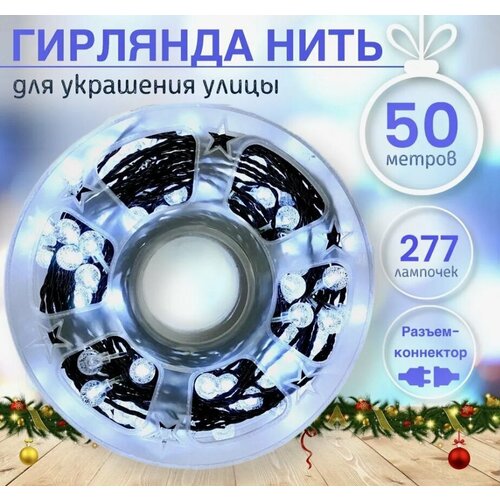 Светодиодная гирлянда - катушка 50 метров, большие лампочки, Белый