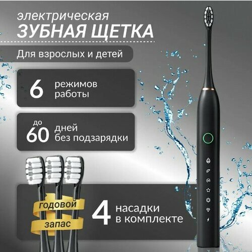 Электрическая зубная щетка X-3, 4 сменных насадки, Белая