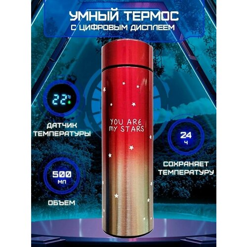 Термос с датчиком температуры 500 мл, умный термос с цифровым дисплеем, Красный с белым