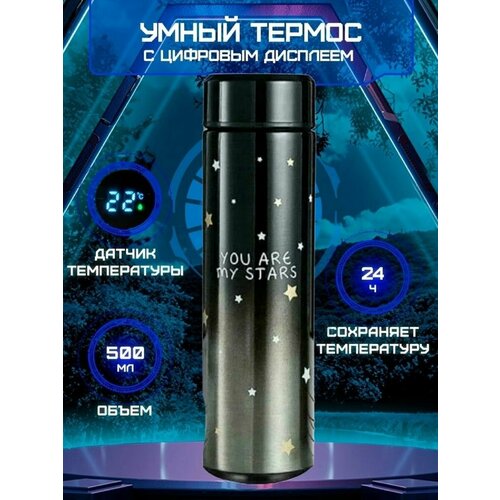 Термос с датчиком температуры 500 мл, умный термос с цифровым дисплеем, Черный с белым