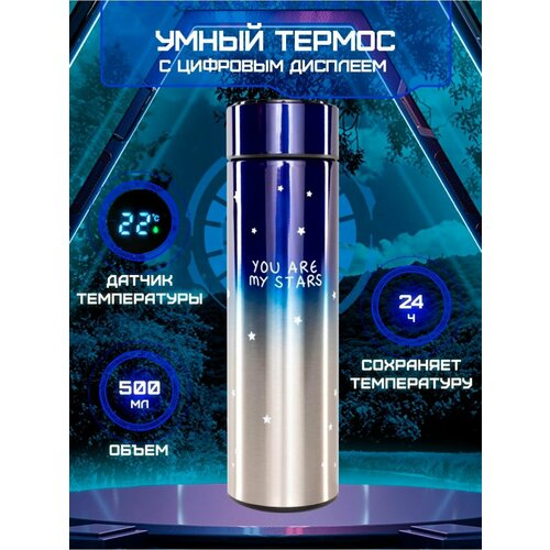 Термос с датчиком температуры 500 мл, умный термос с цифровым дисплеем, Синий с белым
