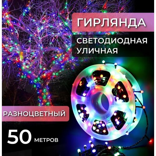 Светодиодная гирлянда - катушка 50 метров, мелкие лампочки, Разноцветный