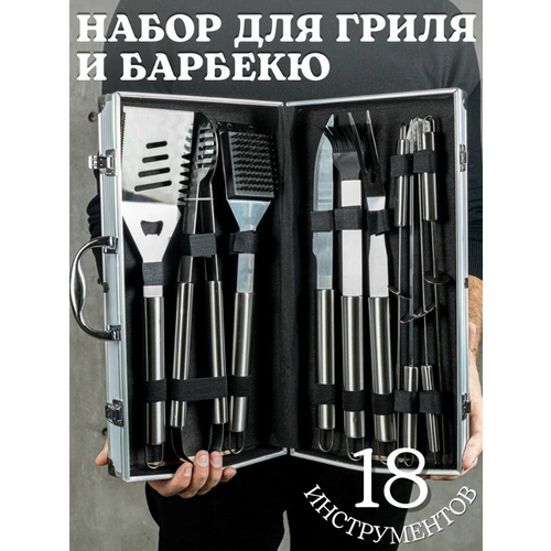 Набор для барбекю, 18 предметов из нержавеющей стали в кейсе