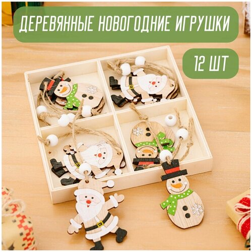 Набор из 12 ёлочных украшений A-PORTE HOME, 14 см, дерево, цвет разноцветный