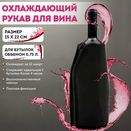 Охлаждающая рубашка для вина и шампанского, объем 0.75 л. Чехол охлаждающий для бутылки, пакет для охлаждения бутылок, охладитель вина, термо рукав