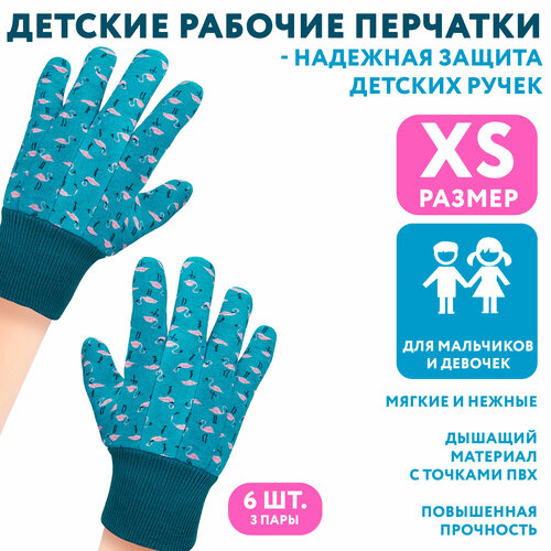 Перчатки садовые детские 3 пары APQ Supply, 6-13 лет. Перчатки рабочие защитные для детей, хозяйственные тканевые ХБ многоразовые для садовых работ
