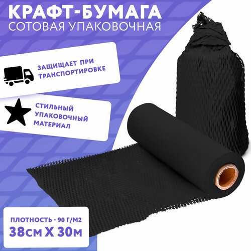 Упаковочная крафт бумага сотовая APQ Supply, 30м, черная. Подарочная бумага в рулоне новогодняя, для подарков, для цветов, оберточная бумага тишью