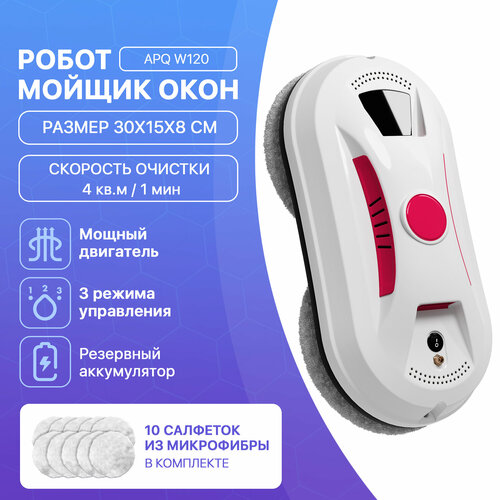 Робот мойщик окон c резервным аккумулятором APQ Supply W120 + сменные салфетки 10 шт. Робот-пылесос вакуумный стеклоочиститель для окон, прибор для мытья стекол, окномойка