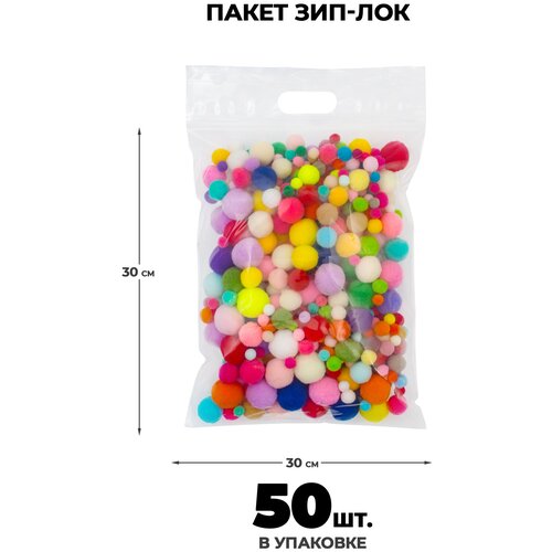 Пакеты с замком зип лок APQ Supply 33x38см 50шт, 80мкм. Большие прочные zip пакеты с вырубной ручкой упаковочные, слайдеры c зип замком застежкой