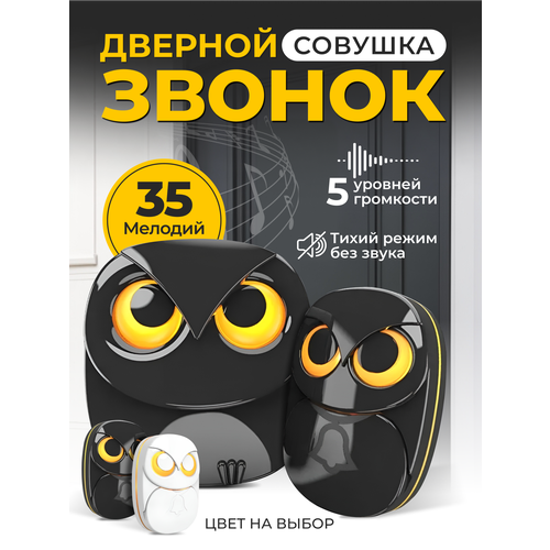 Беспроводной дверной звонок для входной двери "Сова" от сети, 35 мелодий, водонепроницаемый